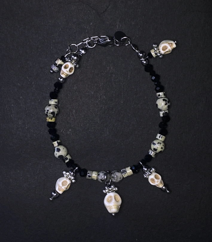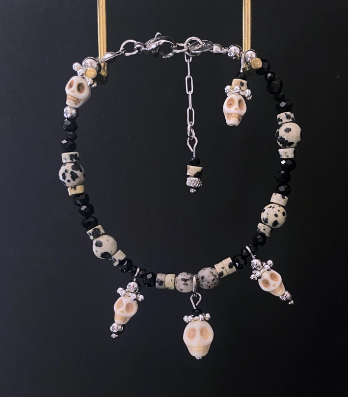 Collar y Pulsera Artesanal Calaveras y Piedras